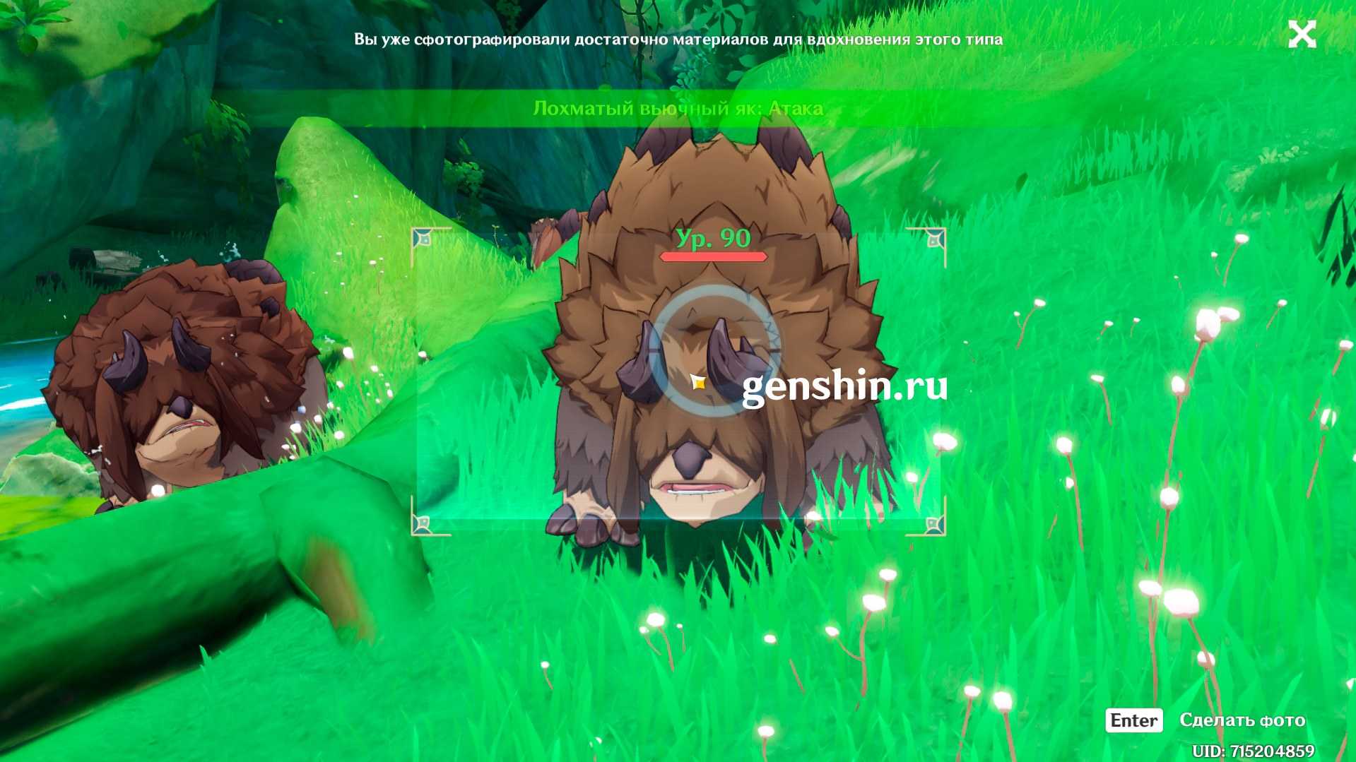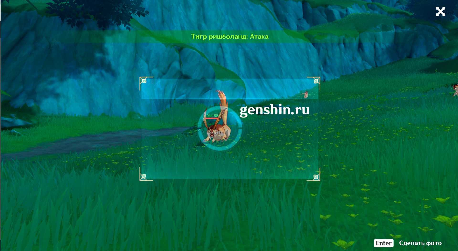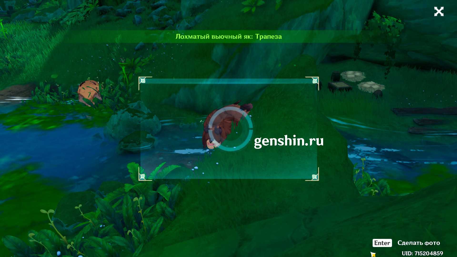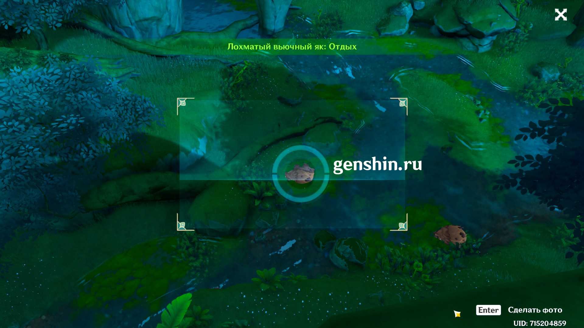 Третий этап прохождения ивента Детская сказка — Поведение животных в Genshin Impact. Сегодня мы будем наблюдать за вьючными яками, спинокроками и тиграми. Отправляемся на первое место поиска, нажав на кнопку «Сделать снимки»: