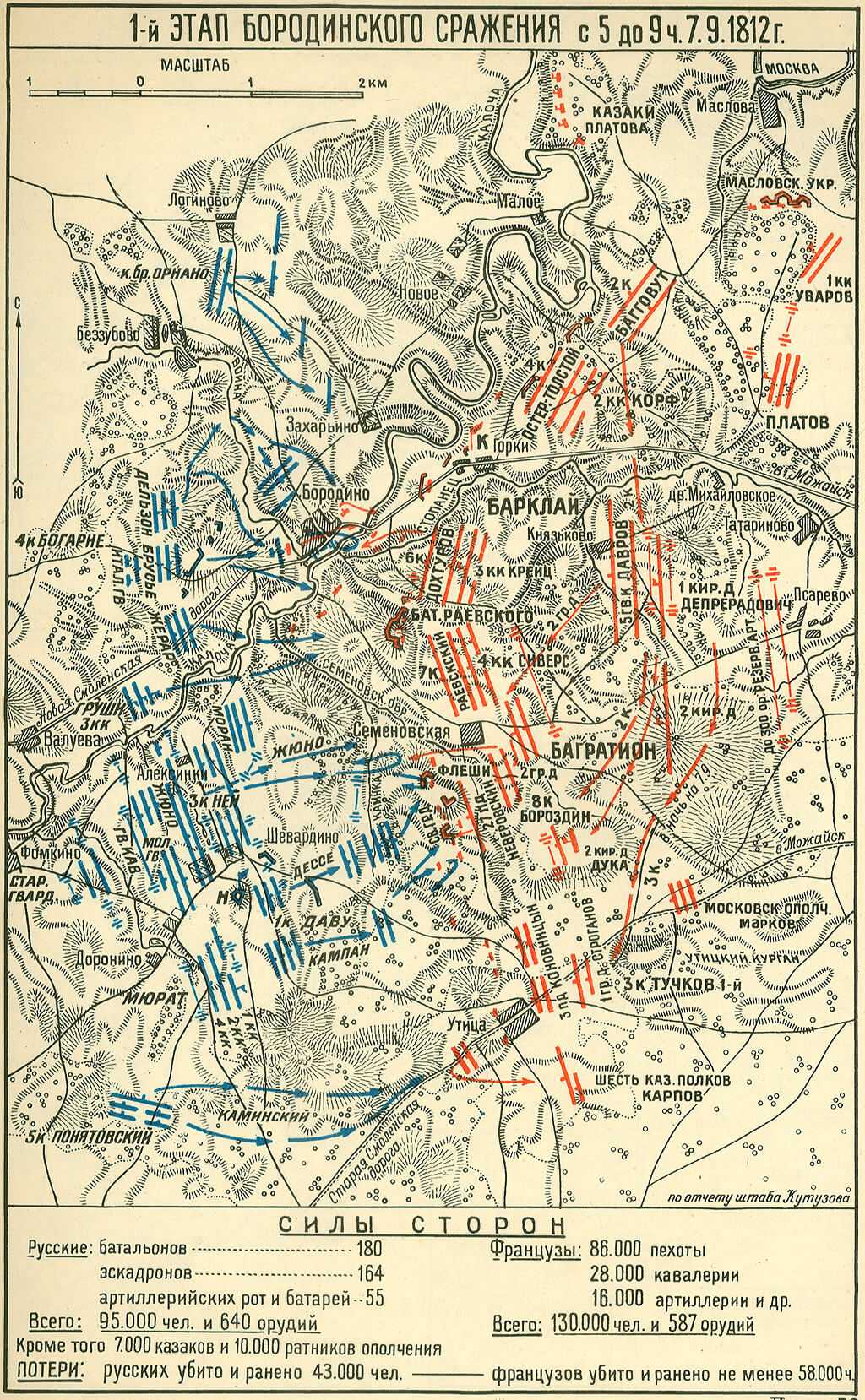 Первый этап Бородинской битвы. (1812db.simvolika.org)