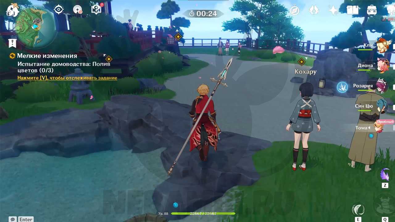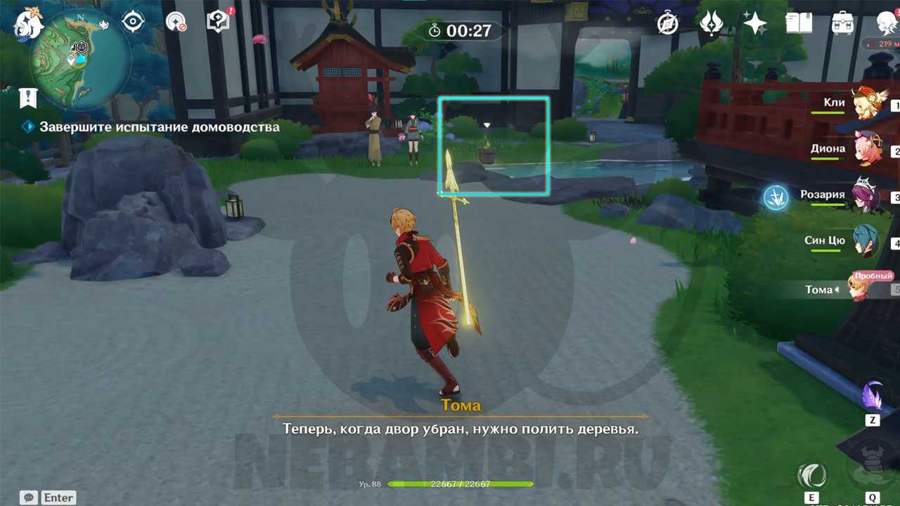 Выполните задания по домоводству за ограниченное время. Сначала вам нужно сломать 6 кустов с помощью обычных атак. Над ними будут стрелочки.