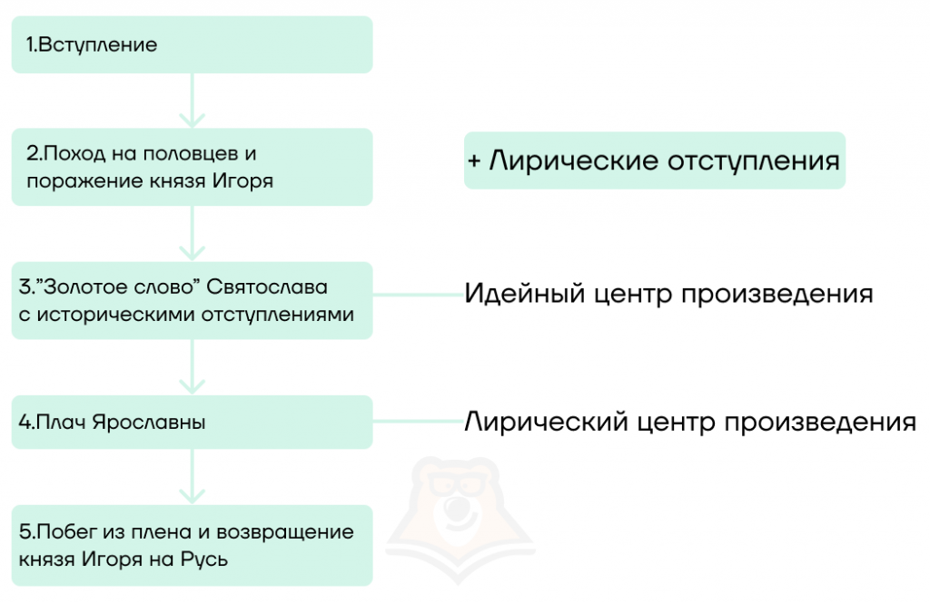 Существуют разные взгляды на композицию «Слова…». Мы рассмотрим композицию по теории литературоведа И. Н. Сухих.