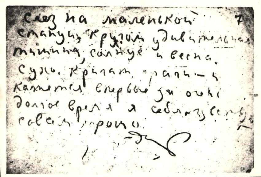 Наспех написанная синим карандашом, она позволяет установить точную дату приезда писателя в наш край — 26 марта (а не 29 апреля, как ошибочно указали при публикации его писем).