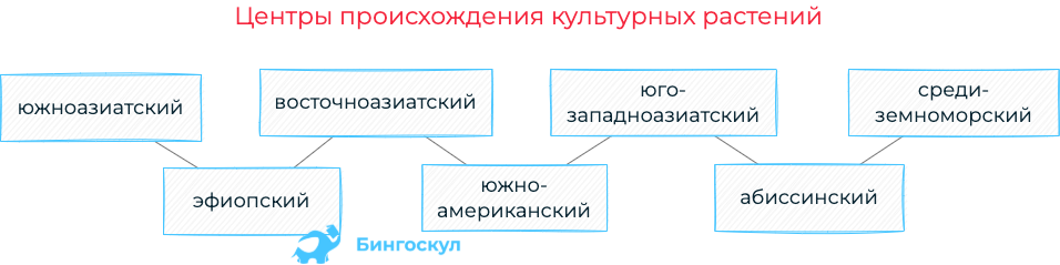 Важным открытием Н.И. Вавилова стали центры происхождения культурных растений. Данные ученый собирал и систематизировал после экспедиций по регионам мира. Идеи о существовании регионов или областей, где выведены культурные растения далекими предками, были выдвинуты Ч. Дарвином. Он утверждал, что остатки окультуренных форм во всем генетическом разнообразии сохранились в диком виде. Николай Вавилов поддержал и доказал верные выводы, сделанные Ч. Дарвином. Проведя практические исследования, он выделил 7 центров происхождения культурных растений.