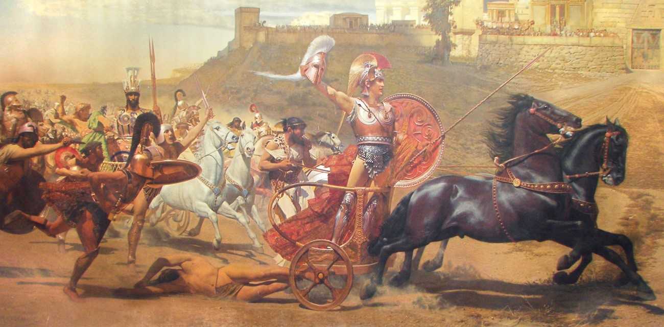 Ахилл жаждет мести, теперь он объединяется с Агамемноном, ведь ни что так не сближает, как общий враг. Герой вызывает Гектора на бой, пронзает шею мечом и жестоко обходится с телом врага, привязав его к своей колеснице и протащив до самого лагеря. За свою жестокость он расплачивается сполна, ведь тоже падает на поле боя по воле богов. Так автор порицает агрессию и своенравие человека.
